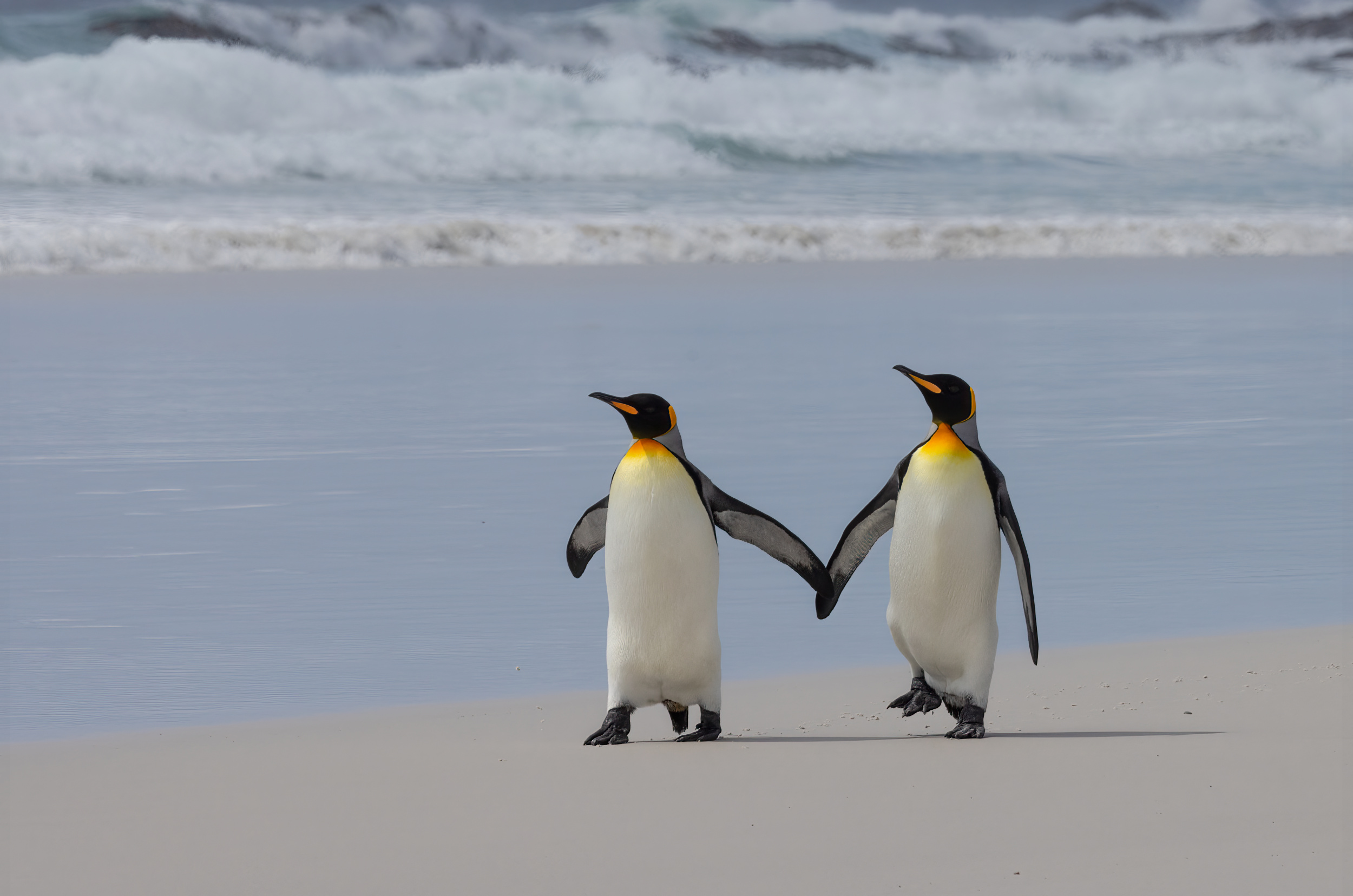 Mine is the photo of the king penguins that I took in the Falkland Islands in South America in 2023. Of all the birds I photographed, penguins are my favourite, followed by owls. Their human-like behaviour is both cute and beautiful. The two king penguins walking along the beach, fin touching fin, were so human-like. One penguin was leading the way while the other looked around as if she needed time to enjoy the beautiful ocean. The male penguin waited patiently for her so they could walk together. In February 2023, I went on a cruise to visit the Falkland Islands. The cruises before and after us were unable to land due to the weather conditions. After I returned home, I found out that my friends who were on the cruise behind us one week later were also unable to land. This made me appreciate our luck even more.